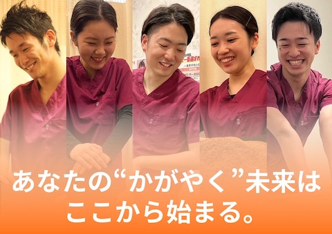 ☆★学べる技術★☆ 〇かがやき式筋バランス療法で高水準の技術を学べる! 大学病院で研究開発された治療法で、 大学病院リハビリテーション科など、多くの整形外科病院・整骨院などで使われている最先端の治療方法を学べます。 筋肉一本一本を触り分けるMT-MPS療法を用いて筋肉調整を行います。 〇根本改善で繰り返さない身体づくり 多様な骨格調整(骨盤矯正・猫背矯正・インパクト矯正(振動矯正)・トムソンベッド矯正・産後骨盤矯正)+最先端機械で行うインナーマッスルトレーニングで根本的な改善を目指します。 〇自律神経&美容へアプローチ フットケア、ヘッドマッサージ、ハンドマッサージなどのリラクゼーションメニューでストレスケアや不定愁訴にも対応。 酵素栄養学に基づいた食生活カウンセリング、美容鍼でお肌のアプローチも◎ お身体のどんなお悩みにも対応できるよう、様々なメニューを導入しています。 かがやきグループで、一緒に輝く人生を創るお手伝いをしませんか? |